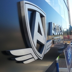 O aço inox é um material nobre que nos últimos tempos vem ganhando muito prestígio. Na comunicação visual esse material pode ser utilizado de diversas formas, tanto em interiores quanto exteriores.