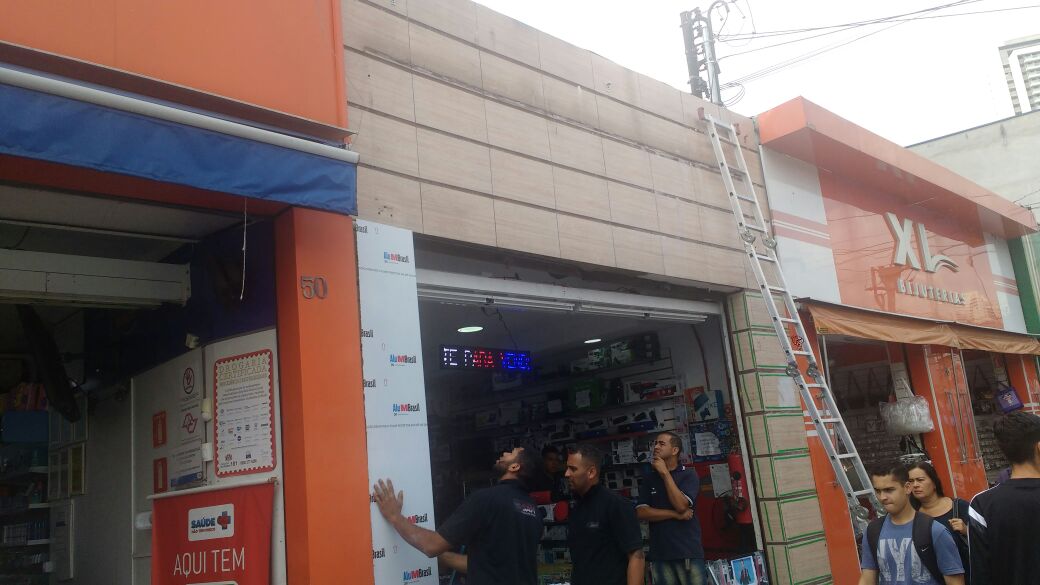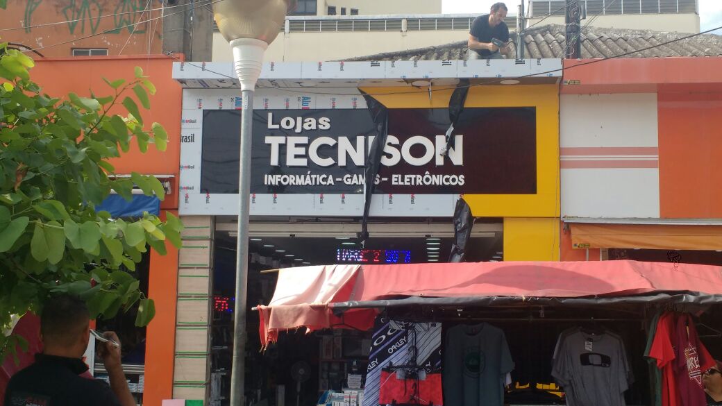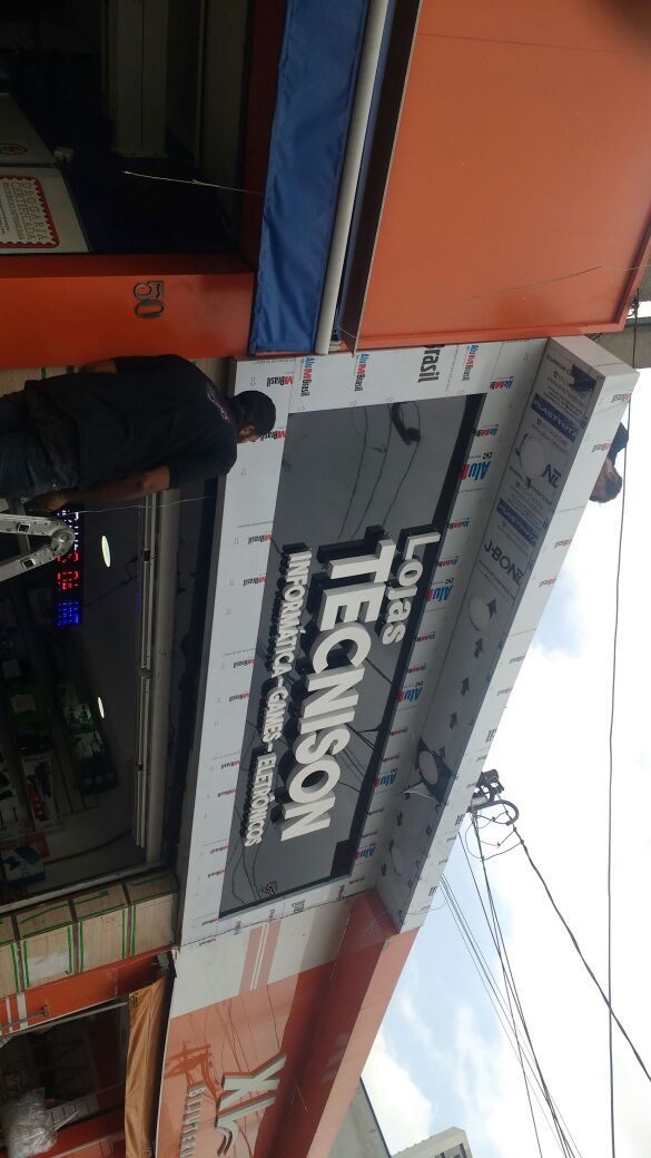 Fachada em acm e letras caixa com iluminação em leds indireta. Trabalho realizado na loja Tecnison, lozalizado na região de Osasco – SP