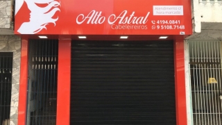 Fachada em ACM red Gloss , logotipo em adesivo com recorte eletrônico, iluminação em leds e pintura Black na porta de aço. Trabalho realizado na região de Barueri – SP